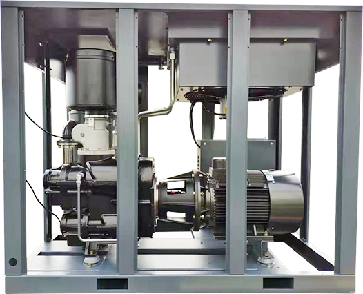 Kompresor udara ulir kompresi dua tahap mengurangi rasio kompresi per tingkat, mengurangi kebocoran internal dan meningkatkan efisiensi volumetrik, mengurangi beban bantalan, meningkatkan masa kerja host. Kompresi dua tahap alih-alih kompresi satu tahap, hampir 15% peningkatan perpindahan, dapat mewujudkan efek penghematan energi 15% lebih banyak.
